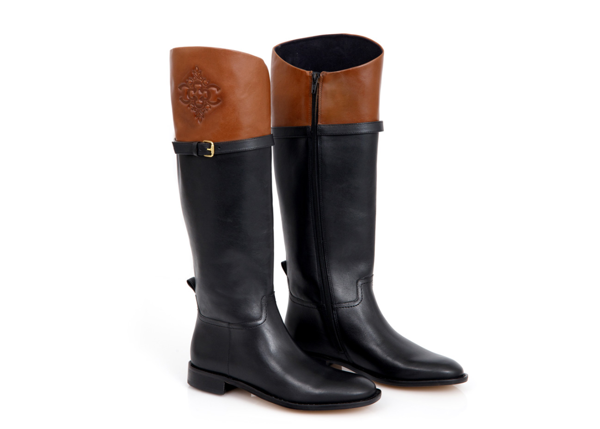 BOTA CANO ALTO DE COURO PRETA E MARROM – CAPODARTE