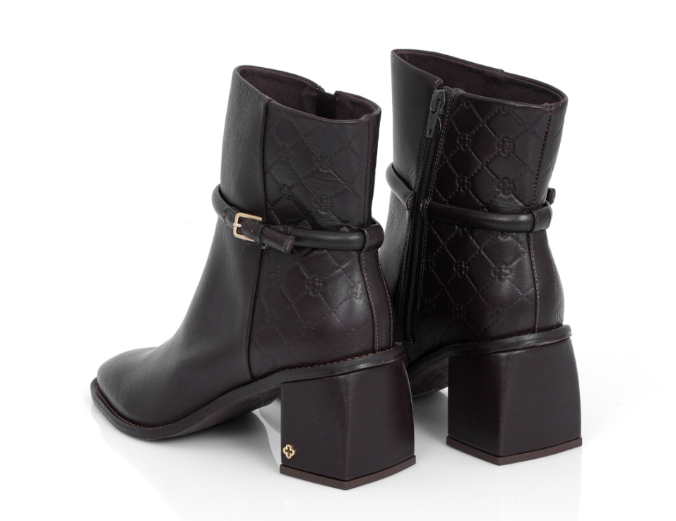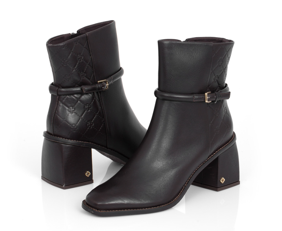 BOTA SALTO BLOCO DE COURO MARROM TOBACCO MONOGRAMA – CAPODARTE